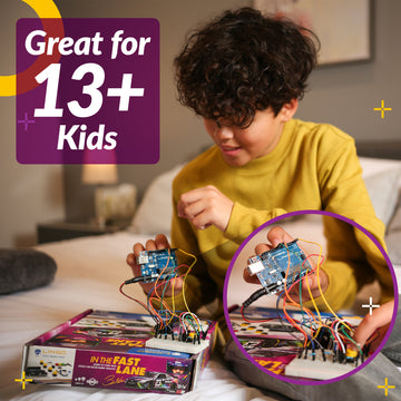 Zoom into the world of racecar driving! With In The Fast Lane, you will build sensors to track cabin temperature, monitor a driver’s heart rate, simulate a race, and analyze the driver's performance. Plus, you will create a game where you can race your friends!